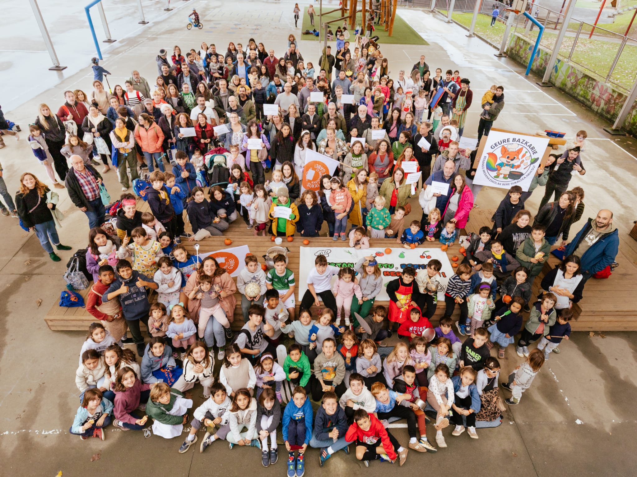 Hala, "eskolan egindako aldarrikapen historiko batean formaltasun falta salatzeko eta etengabeko luzapenei eta Eusko Jaurlaritzak sukaldea eraikiko duenaren inolako ebidentziarik ez dugun egungo egoerari gure egonezina adierazteko", argazki jendetsua atera zuten eskolako patioan. "Ekimenak harrera ona izan zuen, eta babes horrek, jantoki eredu berri baten alde lanean jarraitzeko indarra ematen digu".
