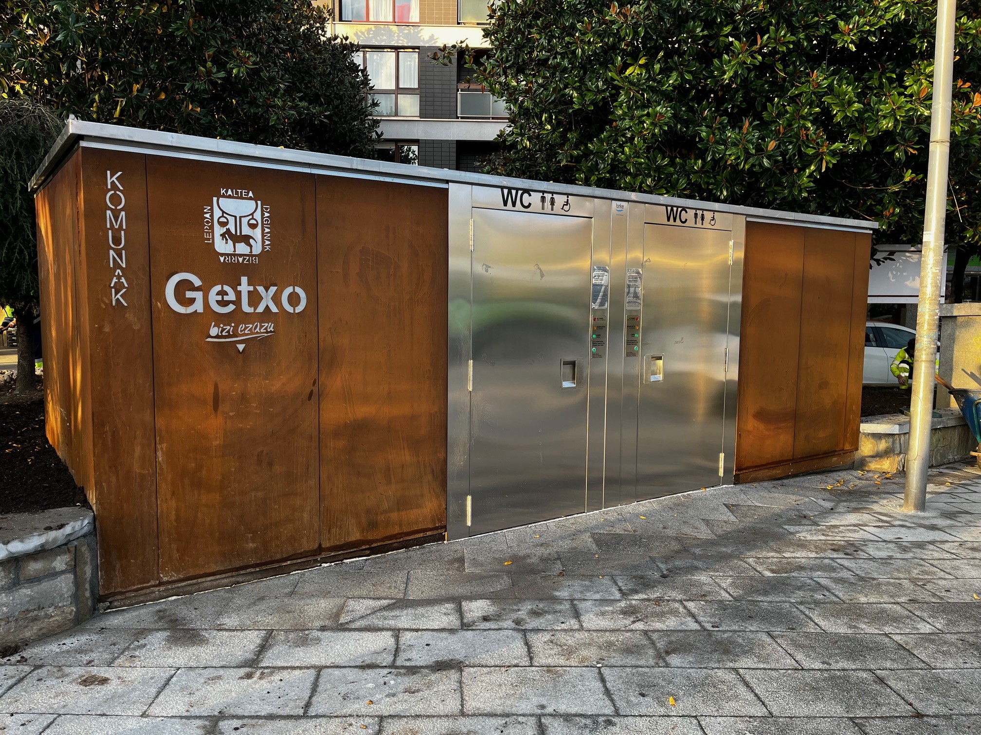 Horrez gain, Santa Ana plazako komuna ere ikus daiteke jada baselizaren inguruan; oraindik martxan ez dagoen arren, laster aktibatuko dute. Udal zerbitzuek, era berean, Portu Zaharrean jarriko den komun berria prestatzen jarraitzen dute.
