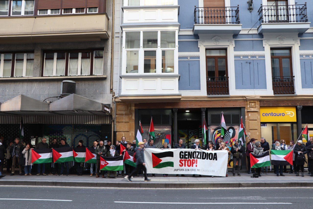 Itzubaltzeta/Romoko auzokide batek Bilboko Justizia Jauregian deklaratu behar izan du gaur, beste hiru pertsonagaz, Espainiako Vueltan Palestinagaz elkartasuna adierazteko egindako protestengatik. Hainbat pertsona elkartu dira epaitegiaren aurrean euren elkartasuna adierazteko Gernika-Palestina Itzubaltzetak deitutako elkarretaratzean, “Genozidioa Stop!” lelopean.