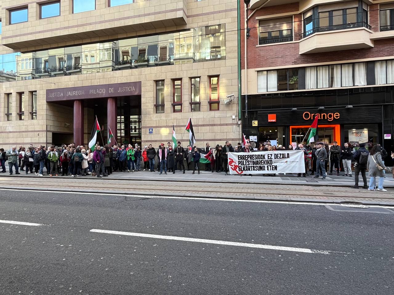 Itzubaltzeta/Romoko auzokide batek Bilboko Justizia Jauregian deklaratu behar izan du gaur, beste hiru pertsonagaz, Espainiako Vueltan Palestinagaz elkartasuna adierazteko egindako protestengatik. Hainbat pertsona elkartu dira epaitegiaren aurrean euren elkartasuna adierazteko Gernika-Palestina Itzubaltzetak deitutako elkarretaratzean, “Errepresioak ez dezala Palestinarekiko elkartasuna eten” lelopean.