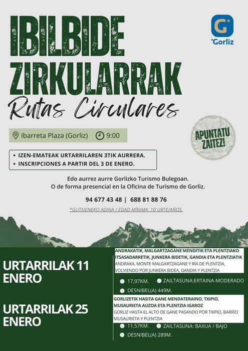 Urteko lehen ibilbidea urtarrilaren 11an, domekan, izango da. Mendizaleak Andraka eta Malgartzagane mendiaren tontorrerantz abiatuko dira, Plentziako itsasadarrera jaitsi aurretik bista panoramikoez gozatuz. Bigarren ibilbidea urtarrilaren 25ean egingo da. Ibilbide honek Gorliz eta Gane mendateak lotzen ditu, Txipio eta Musaurieta auzoak zeharkatuz.