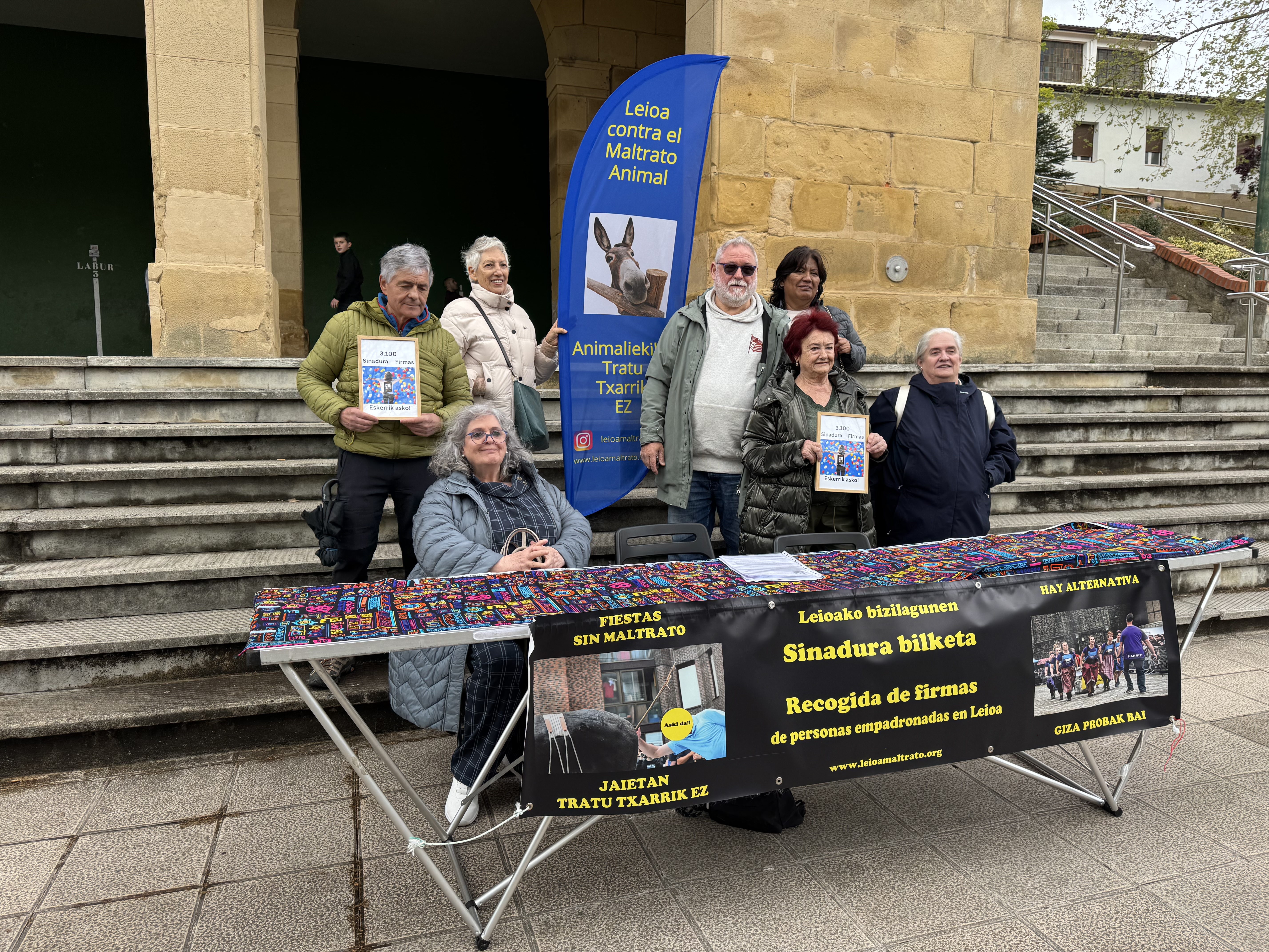 Sinadura bilketa 2025eko irailean abiatu zuen kolektibo animalistak, eta ordutik herriko hainbat lekutan jarritako mahaien bidez bildu dituzte atxikimenduak.