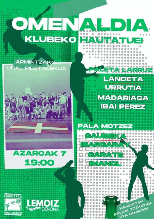 Armintza Pilota Kirol Elkarteak eta Lemoizko Udalak antolatutako ekitaldian Ander Landeta, Iñaki Urrutia, Jagoba Madariaga, Ibai Perez, Esteban Gaubeka, Xabier Ibargaray, Ibon Garate eta Imanol Ibañez omenduko dituzte. Jokalariek azaroaren 23tik 30era Bilbon jokatuko den Nazioen Ligan jokatuko dute Euskal Selekzioagaz.