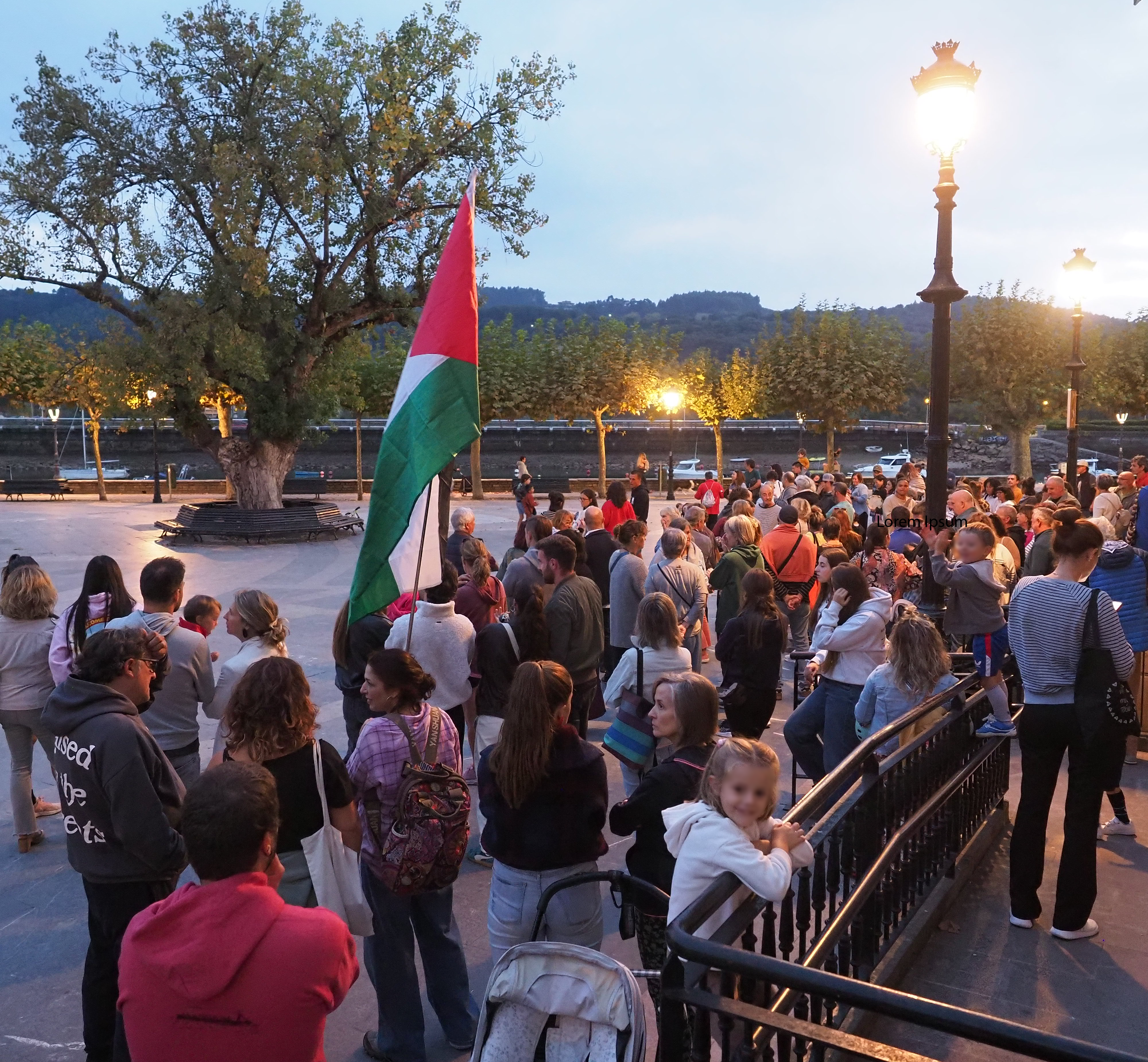Sindikatuek atzo Palestinaren alde deitutako grebagaz batera, Gernika-Palestina herri-ekimenak heltze-jotzeak ere antolatu zituen 19:30ean, Hego Euskal Herriko hainbat udalerritan. Plentzian ere 100 herritar inguru bildu ziren udaletxearen atarian, familiak eta adineko pertsonak barne.