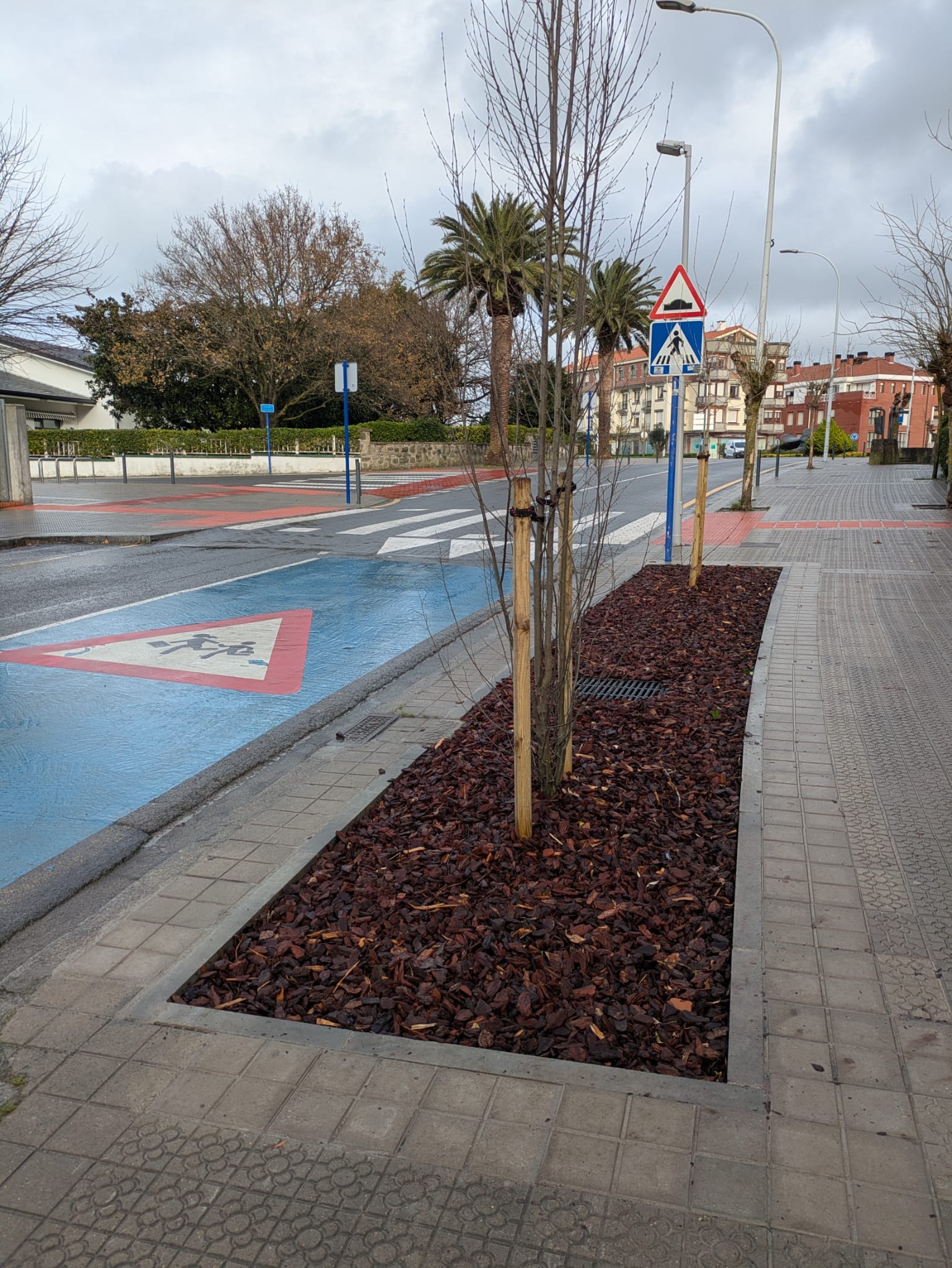 Bederatzi metroko bi txorko jarraitu ireki dira, guztira 27 metro koadroko azalera hartzen dutenak, eta bakoitzean bi zuhaitz landatu dira. Xedea zuhaitzek lur egokiagoa izatea da, uraren kudeaketa hobetuz eta hazkunde osasungarriagoa bermatuz. Horretarako, euri-urak bildu, iragazi eta lurrean infiltratzen dituen sistema ezarri da, uholde-arriskua murrizten laguntzen duena.