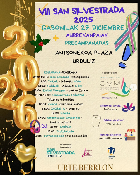 San Silvestradak emango dio egunari hasiera, bai txikiak bai handiak. Txikientzako lasterketa goizeko 11:00etan izango da, helduen txanda ordu erdi geroxeago izanik. Bitartean, 11:30etik 12:30era, umeentzako tailerrak egingo dira.