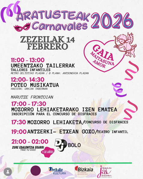 Arrastian, mozorroak erakusteko unea iritsiko da! 17:00etan zabalduko dute lehiaketan izena emateko epea, eta 17:30ean hasiko da mozorro lehiaketa, kolore, irudimen eta umorez betetako desfileagaz. 19:00etan, ordea, familientzako antzerkia izango da: Etxean goxo ikuskizuna, adin guztietako ikusleei zuzendua.