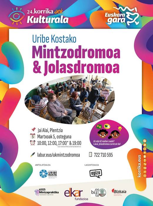 Euskaraz modu lasaian aritzeko eta hurbileko jende euskalduna ezagutzeko aukera eskaintzen duen ekimena da Mintzodromoa. Aurten, Plentzian egingo dute, eta, ordutegia aitzakia izan ez dadin, lau txandetan banatuko dute: 10:00etan, 12:00etan, 17:00etan eta 19:00etan. Izen-ematea daborduko zabalik dago, eta esteka honen bidez egin daiteke.