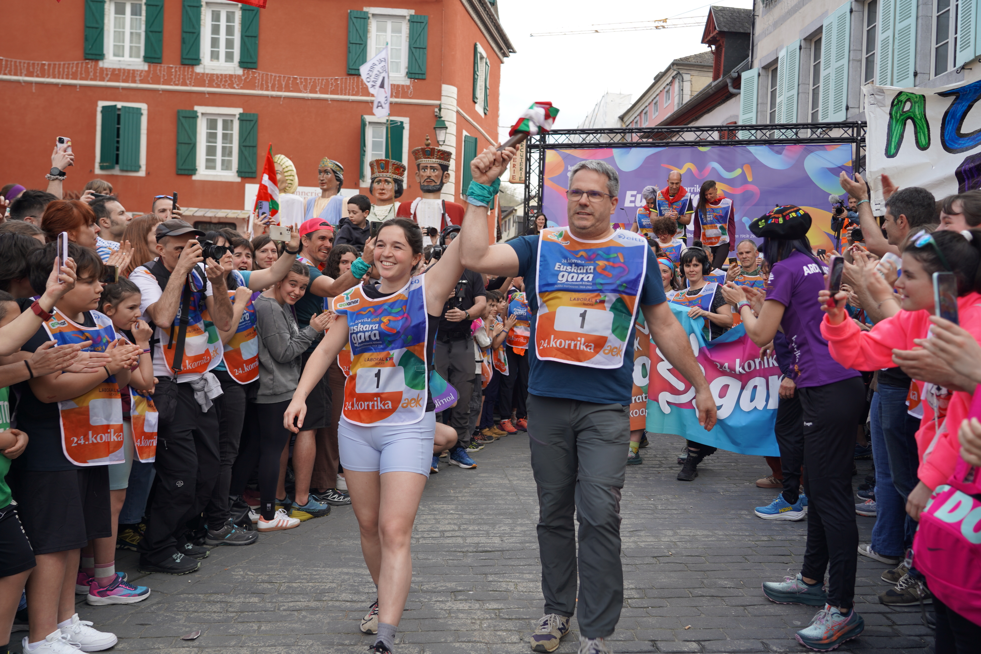 Erritmo bizian eta geldialdirik gabe, kaleak kolorez, musikaz eta euskararen aldeko oihuz beteko dira. Lekukoa eskuz esku ez ezik, bihotzez bihotz ere igaroko da, herri baten aldarria bizirik mantenduz. Izan ere, Korrika elkarregaz aurrera egiteko modu bat da. Beraz, hasi luzaketak egiten eta kalera irten, lekukoa hartu eta ekin diezaiogun bideari elkarregaz; tipi-tapa, tipi-tapa, Korrika!